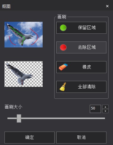 完成了,如果需要更精细的抠图,您可以通过原图画刷和清除画刷进行修改