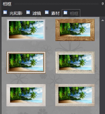 点击相框会出现相框窗口,可以选择相框形态并调整相框大小